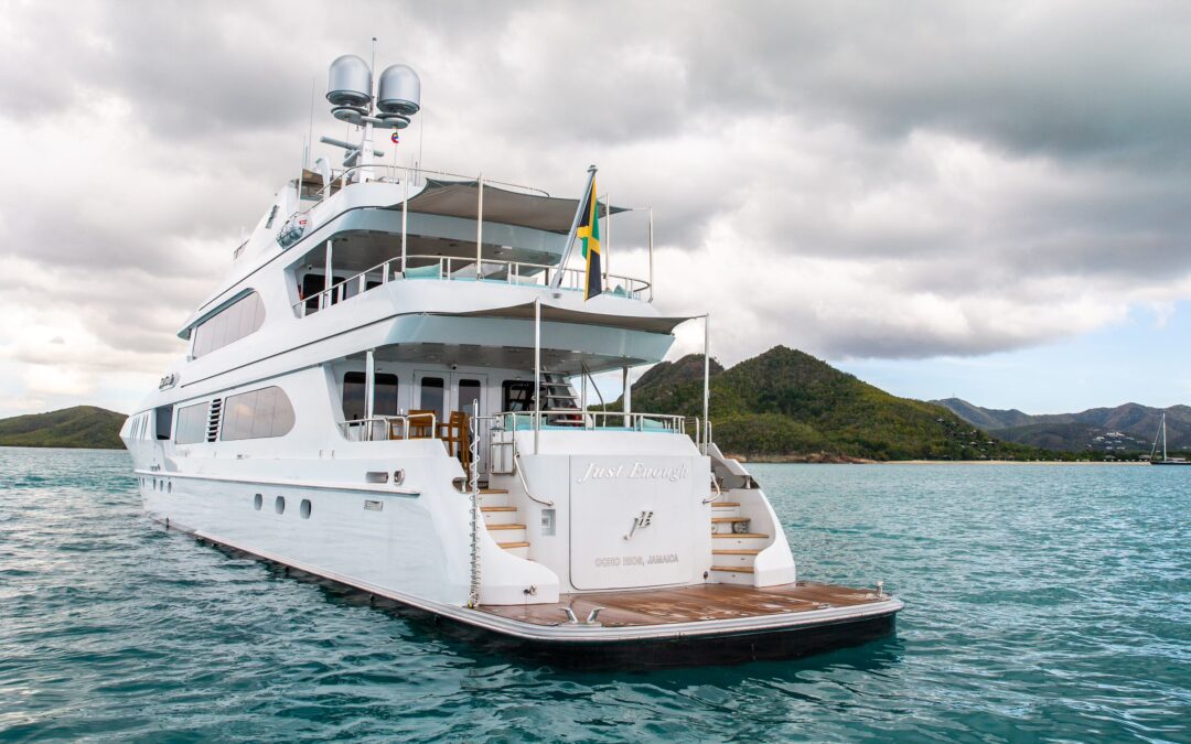 The moment you step through the Main Salon doors, you’ll be swept away by the elegant interior design that flows throughout this floating palace. Your private sanctuary awaits in the full-beam Master Stateroom with its king-sized bed and luxurious ensuite featuring a double jacuzzi bathtub, while four additional Deluxe Staterooms below deck offer their own slice of heaven – one king, two queens, and a twin with pullman berth. Each stateroom boasts Italian marble ensuites and plush terry cloth robes, creating a spa experience that puts even the finest Caribbean resorts to shame. The real magic happens on Just Enough’s spectacular Sun Deck, where teak decking, a bubbling jacuzzi, full bar, BBQ grill, and tri-deck water slide create your personal playground in paradise. Luxurious sunbathing areas with fixed and retractable sunshades ensure perfect comfort while the Caribbean becomes your ever-changing backdrop. Just below, discover your private dining room where five-star meals unfold as the sun melts into island mountains, painting skies in colors no filter could capture. Fair warning: you and your guests might just decide to cancel those return flights – after all, why leave paradise when paradise has everything you need?